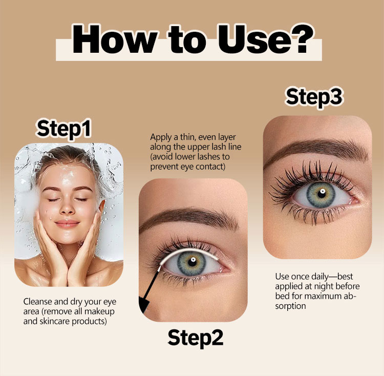 Apply a thin line of serum directly to the base of the upper lash line (like applying liquid eyeliner).